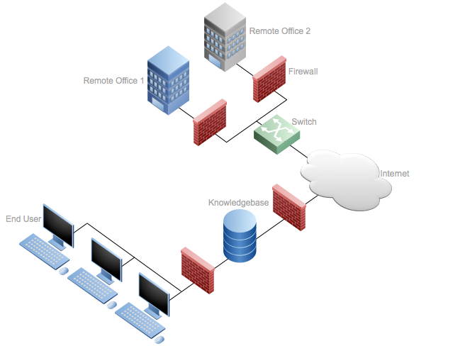 The to a higher place diagram is an example of the flow of information from a remote office to an end user. We see the connections between each part of the network and each part's human relationship to the others. With everything sketched out, explaining networks to a layman becomes more a affair of tracing a line and not an act of unfathomable wizardry.